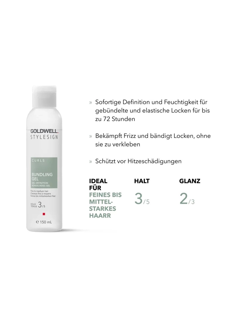 Das Goldwell StyleSign Curls Bundling Gel entfaltet das volle Potenzial natürlicher Locken und Wellen. Die innovative Formel definiert, pflegt und spendet intensive Feuchtigkeit – für elastische, gebündelte und lebendige Locken mit bis zu 72 Stunden Halt. Ideal geeignet für feines bis mittelstarkes Haar, sorgt das Locken-Gel für ein gepflegtes, frizzfreies Finish ohne zu verkleben oder zu beschweren.