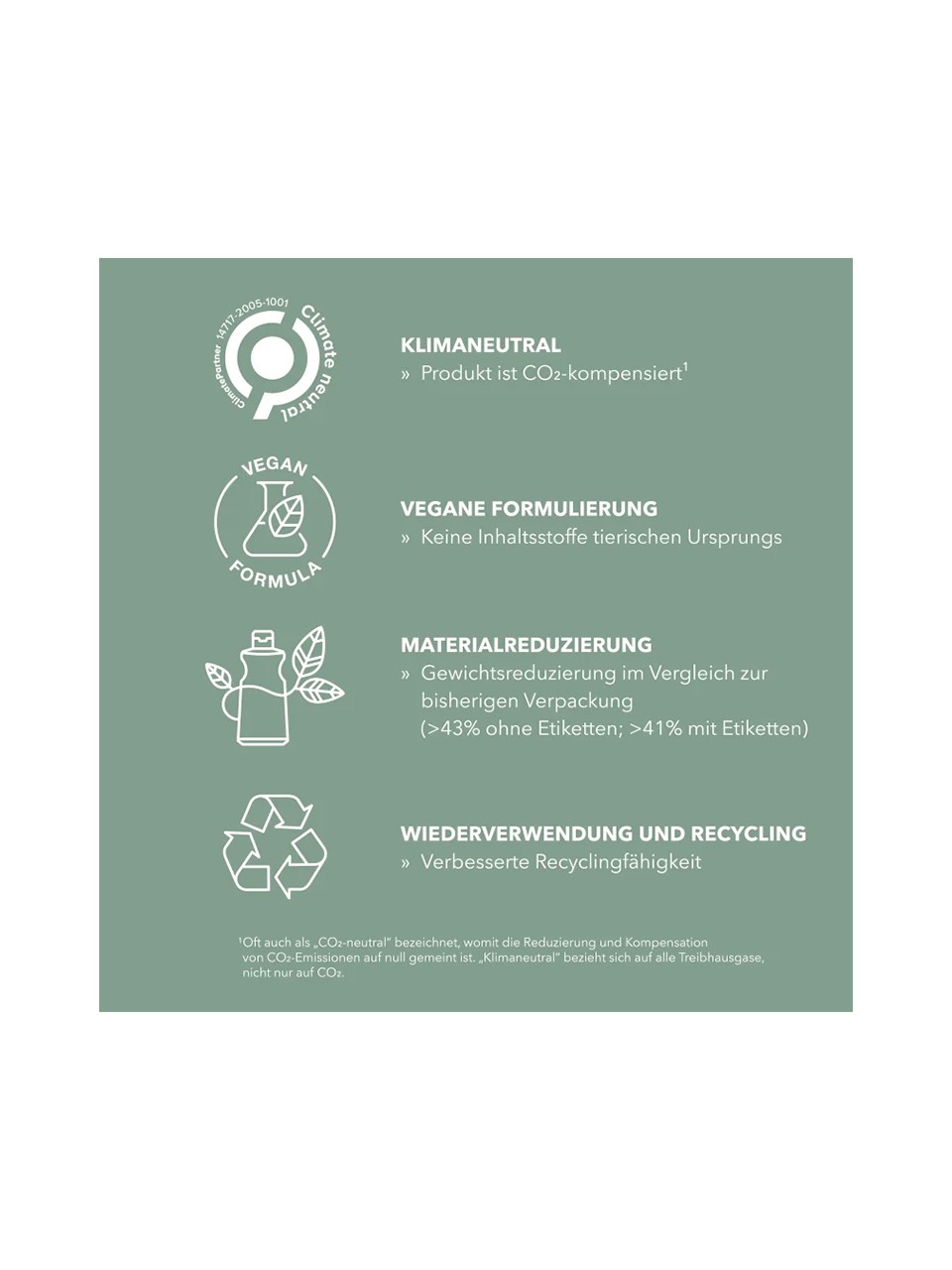 • nachhaltiges Verpackungskonzept: reduziert das Gewicht der Tube um über 43 % (ohne Etikett) und verbessert gleichzeitig die Recyclingfähigkeit