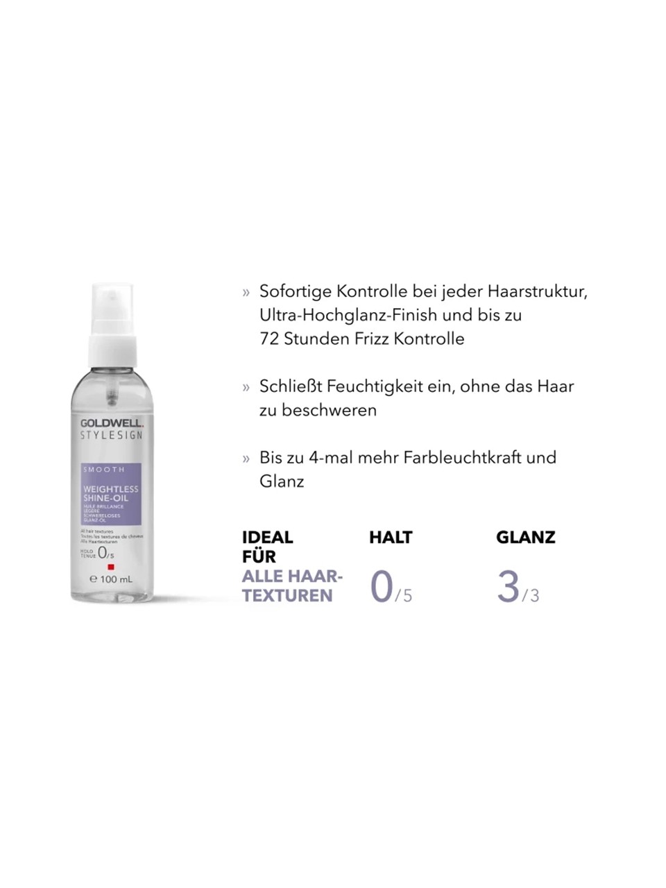 • universelle Anwendung: geeignet für alle Haartypen, sorgt für seidige Geschmeidigkeit und brillanten Glanz ohne zu beschweren