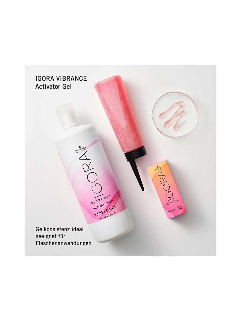 Das Schwarzkopf Igora Vibrance Activator Gel enthält einen Gelbildner, der eine einzigartige Gelkonsistenz kreiert, die sich perfekt für die Anwendung mit der Applikatorflasche eignet.