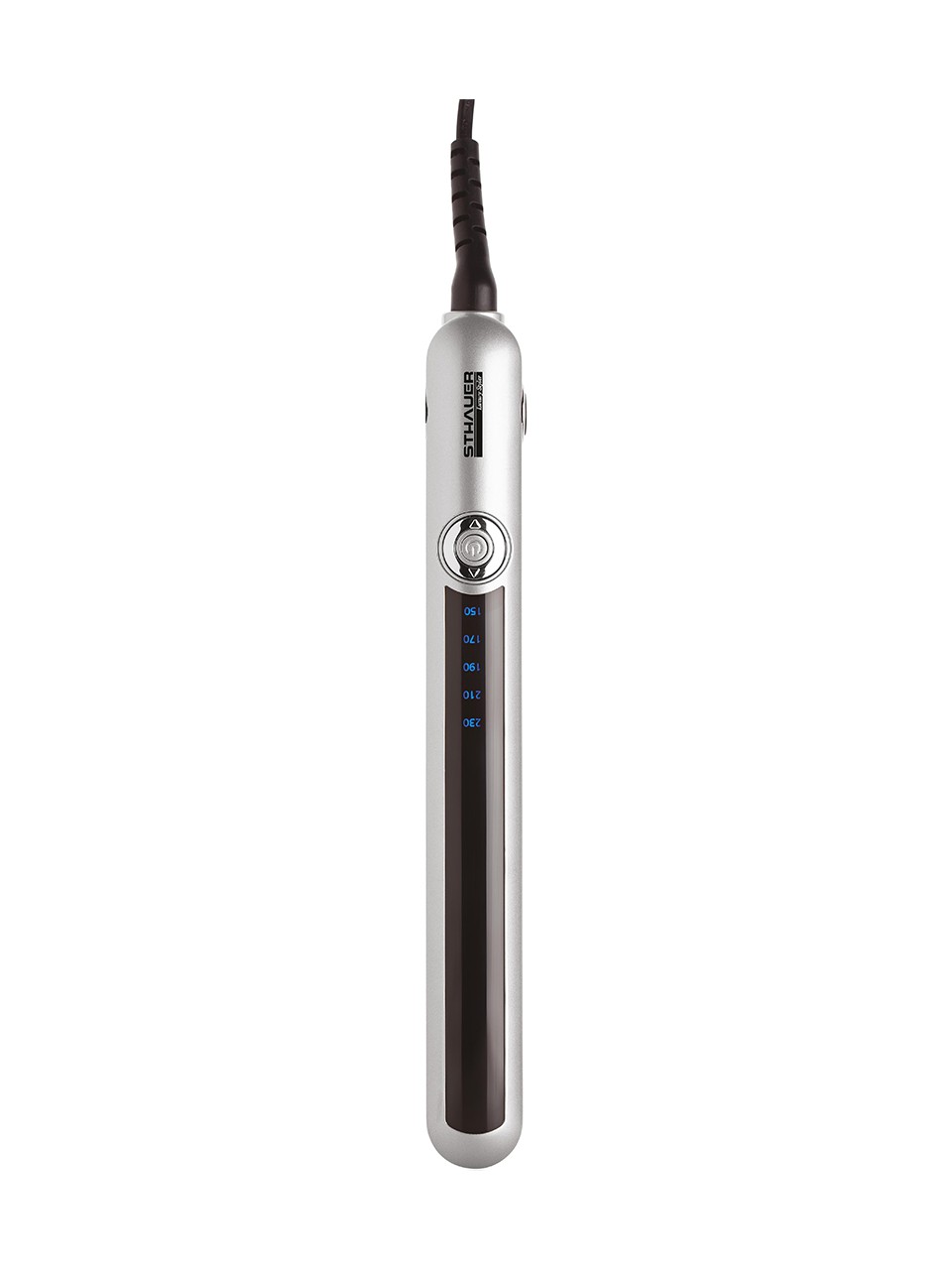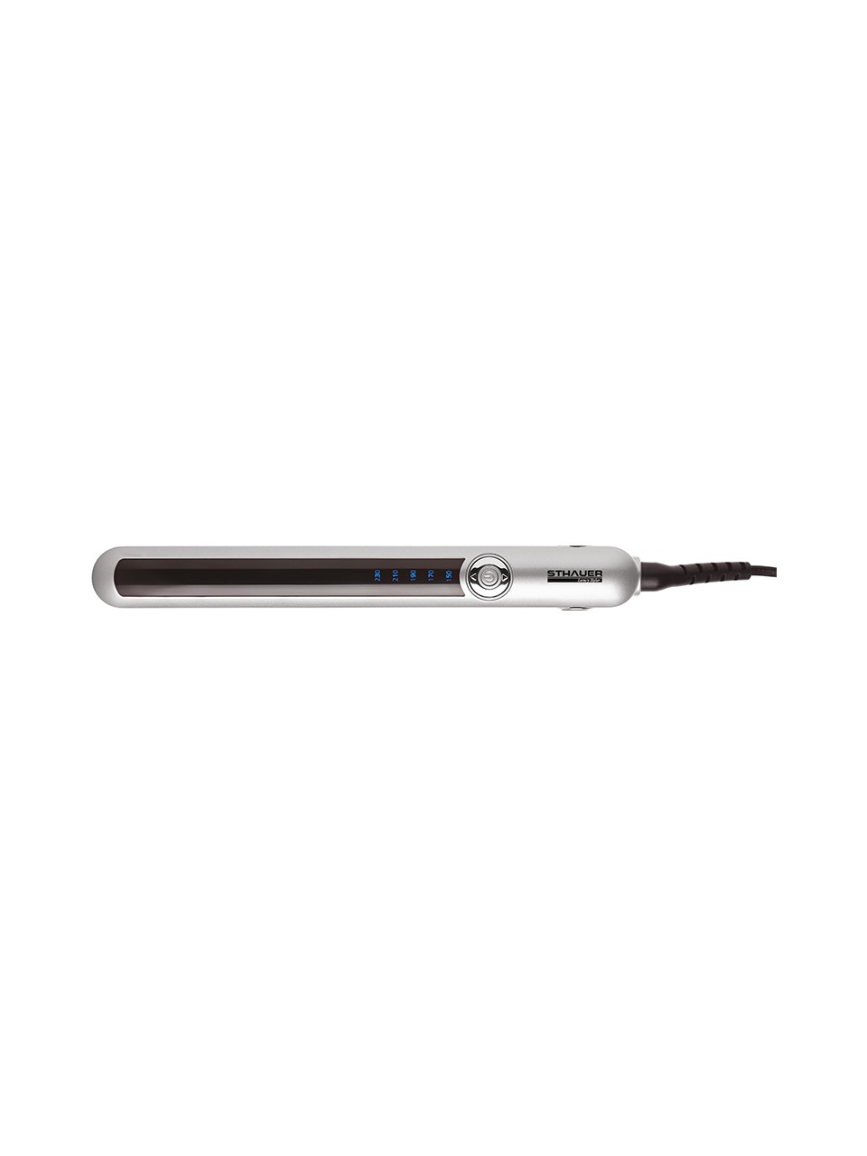 Professionelles und kompaktes Glätteisen mit digitalem Bedienfeld und 5 Temperatureinstellungen, die je nach Art des zu behandelnden Haares angepasst werden können. Es erreicht die eingestellte Temperatur in ca. 60 Sekunden und die Platten garantieren eine gleichmäßige Wärmeverteilung, wodurch das Haar glänzend und brilliant bleibt. Geeignet für alle Arten von dicken, feinen oder natürlich gelockten, behandelten oder gefärbten Haaren.