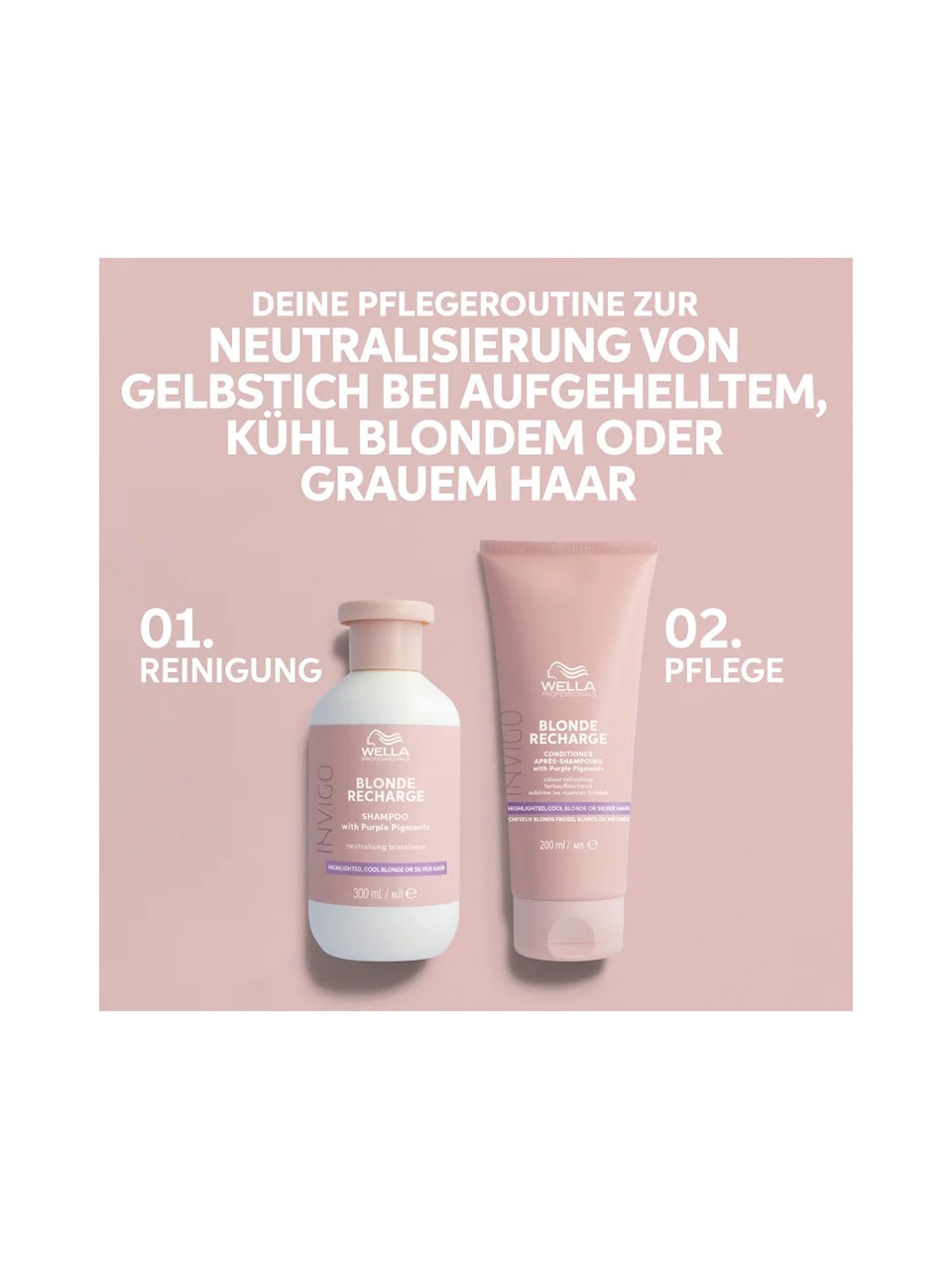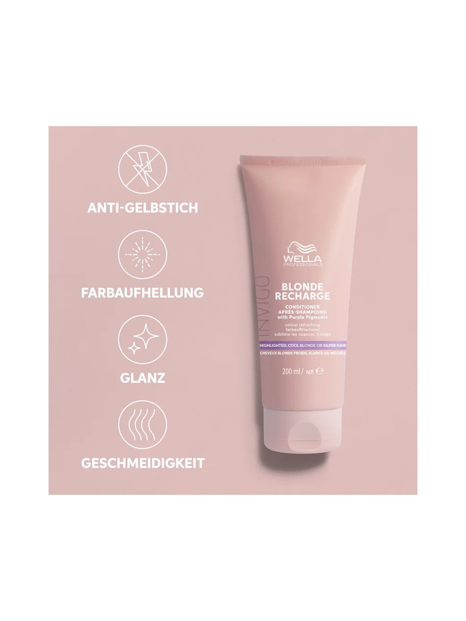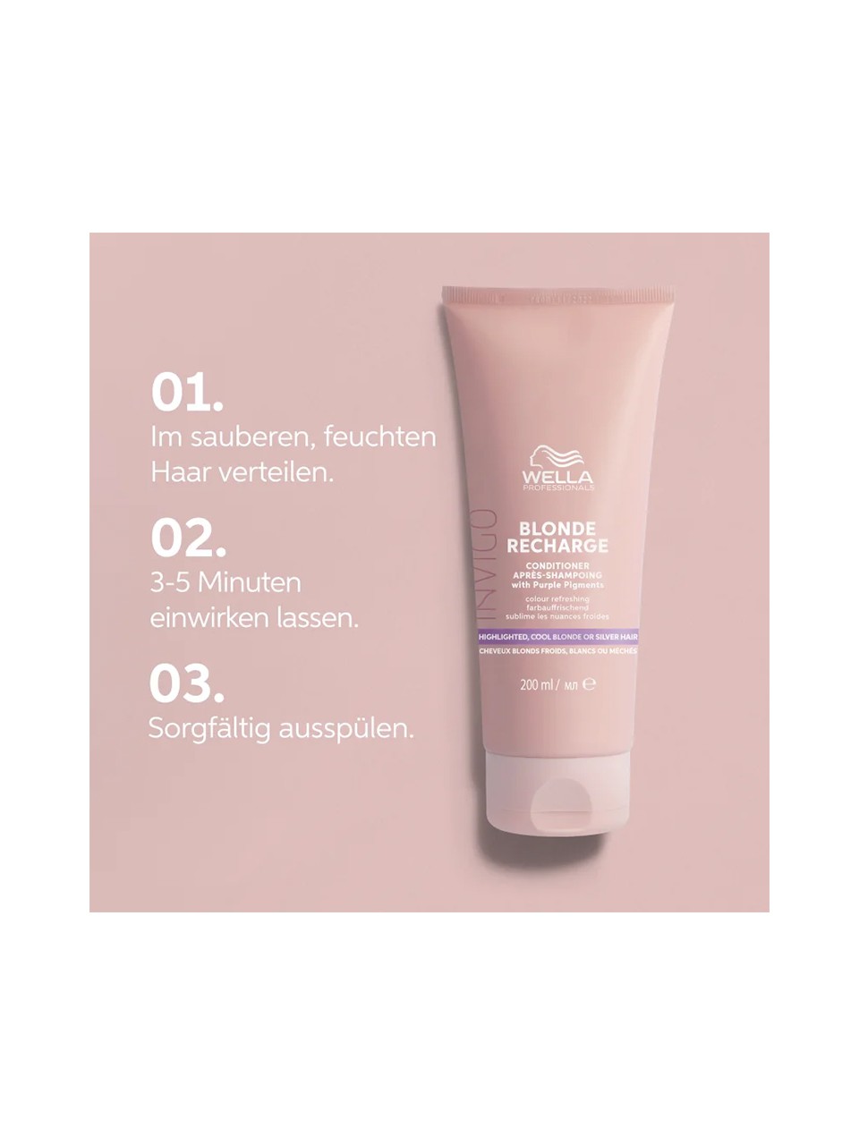 Der Wella Invigo Blonde Recharge Conditioner ist speziell entwickelt, um blonde Haare zu revitalisieren und die Haarfarbe aufzufrischen. Er neutralisiert effektiv den Gelbstich und verleiht dem Haar eine strahlende blonde Nuance. Angereichert mit Farbpigmenten und Vitamin E, bietet dieser Conditioner nicht nur Farbbrillanz, sondern auch intensive Pflege und einen zarten floralen Duft.