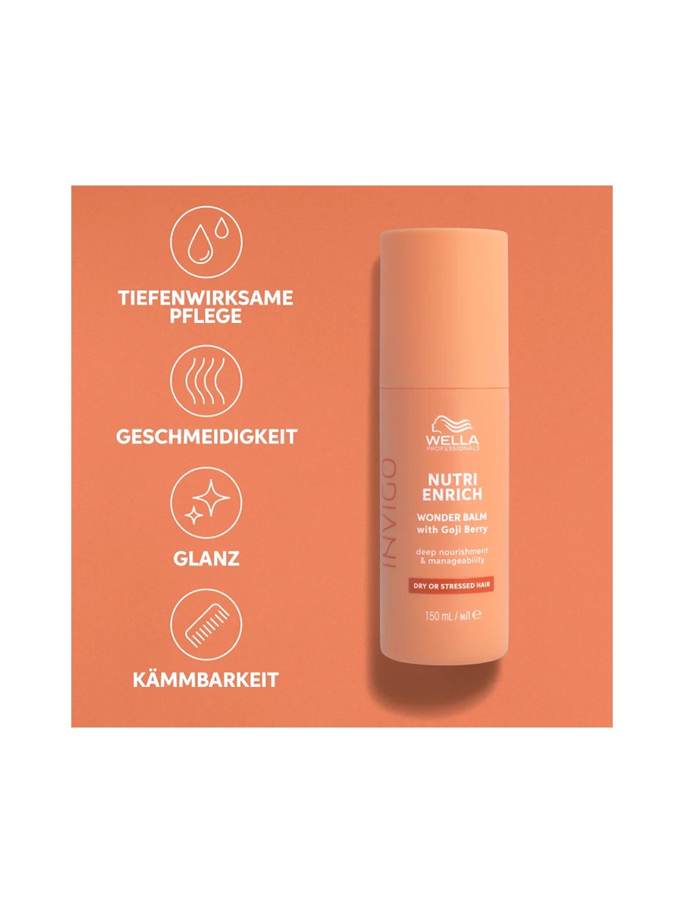 Der Wella Invigo Nutri-Enrich Wonder Balm ist ein Haarbalsam für trockenes und strapaziertes Haar. Er nährt sofort in der Tiefe. Die ultrareichhaltige Leave-In-Formel verschmilzt mit dem Haar und sorgt tief im Haarinneren für Geschmeidigkeit.