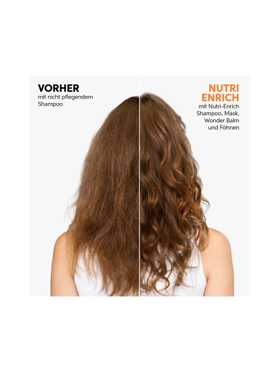 • Ölsäure und Panthenol versorgen das Haar mit Feuchtigkeit und Nährstoffen, während Vitamin E das Haar vor weiterer Belastung schützt (Nutri-Enrich Complex)