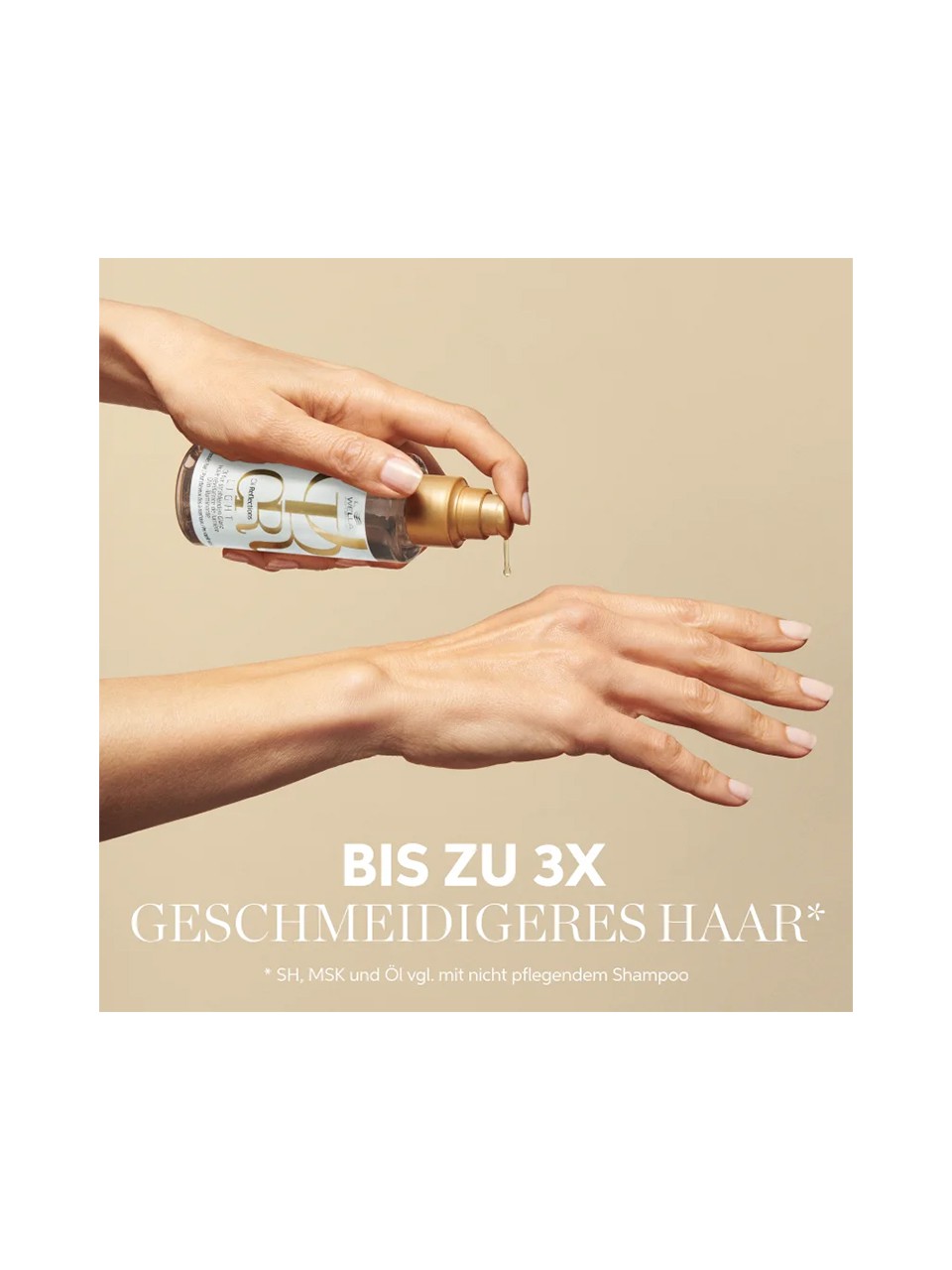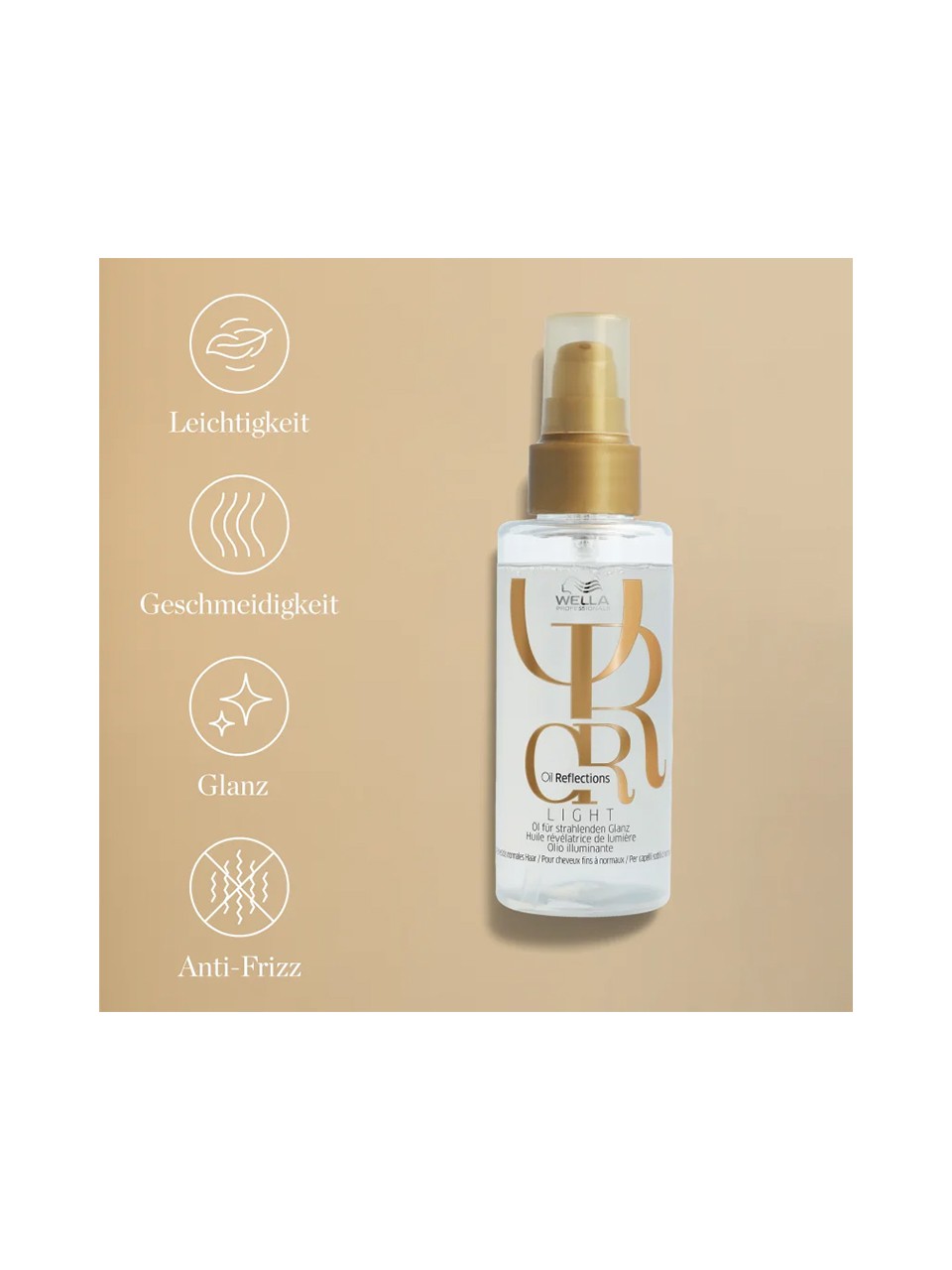 Leichtes, vielseitiges Öl für Lichtreflexionen. Sofortige Leuchtkraft ohne das Haar zu beschweren.